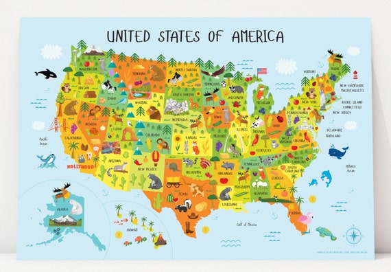 United States Map, USA Map, Travel Nursery Decor, Ocean Nursery